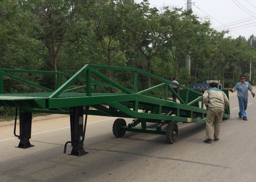 移動(dòng)式登車橋與叉車配合使用的貨物裝卸輔助設(shè)備,可根據(jù)汽車車廂的高低調(diào)節(jié)高度,叉車可以直接通過本設(shè)備駛?cè)胲噹麅?nèi)部進(jìn)行貨物的批量裝卸,僅需單人作業(yè),即可實(shí)現(xiàn)貨物的快速裝卸。它使企業(yè)減少大量勞力,提高工作效率,獲取更大經(jīng)濟(jì)效益。